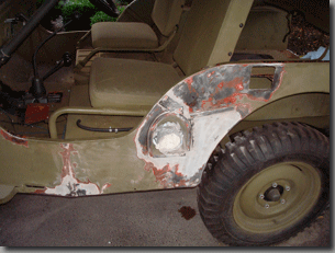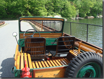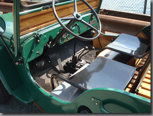 This Jeep was my first experience with a Jeep project. The previous owner did a military version of the CJ2a (first year civilian Jeep), but I wanted something different. With many years of experience as a woodworker, I wanted to try my hand at doing a custom Woody version. I wanted to mix as many types of wood as I had available to give it that look of the woody's past. Many of the woods used are expensive and exotic, such as Purple Heart which comes from South America. When fresh cut, it has a grey tone, but as it's exposed to sunlight, it turns to a beautiful eggplant purple. Oak was used for the majority of the planking, as it's very strong and resistant to weather and wear. Oak also has a very nice grain when it's properly finished, very pronounced and distinctive.