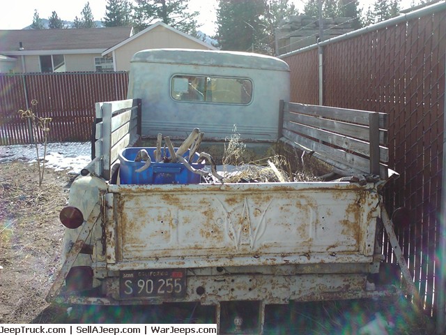 Project 1948 Willy's Truck1 ton pickup all original. It still runs but has been sitting awhile. It has rust in the inside and some on body. Great running truck! I'd love to have someone put some love back into it. I'm located in California. Thank you! Price: $5,000 City: Portola State: CA Please contact Farah at: email: packerlake2000@yahoo.com DISCLAIMER: The information in this ad is provided by the seller and not SellAJeep.com. The prices, terms, and reliability of the item remains subject to the direct negotiation between the buyer and seller. SellAJeep.com is not responsible for any damages that may occur during a transaction. Please review our Terms of Use. To help prevent Internet scams or fraud read Potential Fraud And Internet Scams. An educated buyer and seller is the best prevention against this threat. Please report any suspicous activity to marksmith@sellajeep.com |