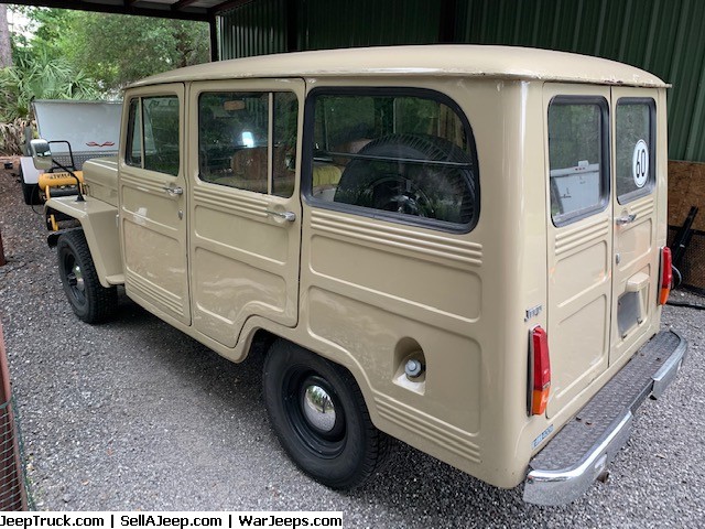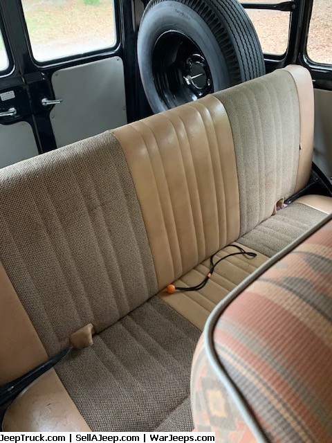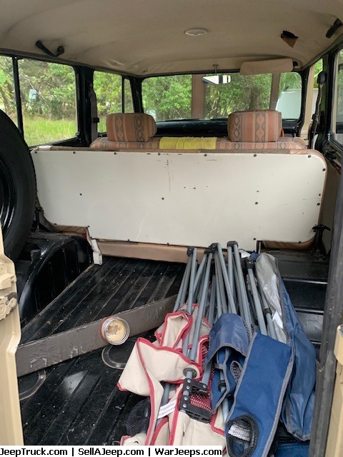 The Jeep was reportedly finished a 2-tone scheme originally, but was repainted in solid tan by a previous owner in Japan. Areas of corrosion along the roof drip rails as well as bubbling in other locations.