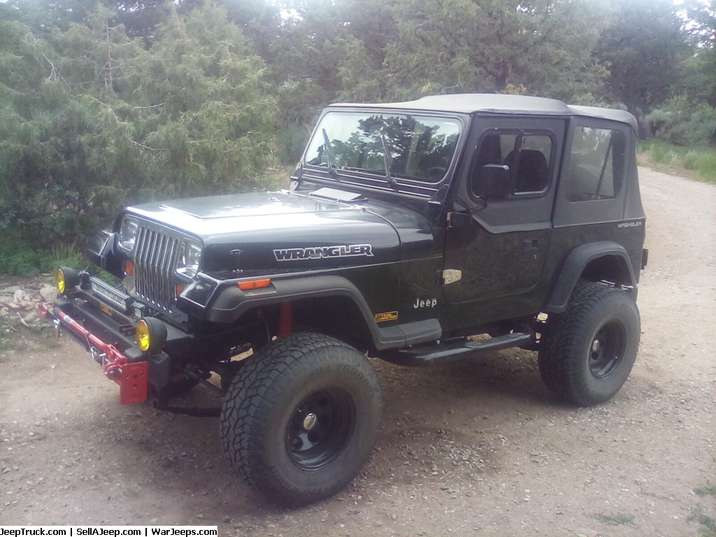 Excellent condition, only 92,000 original miles. Great 33 x 12.5 tires on custom black steel rims, including new spare w/cover. New 4" Trail Master suspension, w/new ball & axle joints, 2" body lift, 8" rear end w/4.56 gears, 5 sp manual trans w/OD, fuel efficient 4 cylinder engine, runs great, no smoke, no leaks, new aluminum radiator, new Alpine Stereo w/remote (installed but not hooked up), CB, all steel bumpers front & back, Posi-Lok 4 wd engager, new high lift jack mounted, new shocks, new dual steering dampers, soft top in excellent condition, 3 sets of running lights, heater works, interior and exterior excellent (garaged), no leaks inside, no rust, battery 1 year old, air induction, padded roll bar, new windshield & seal, chrome grille, clear title and clean CarFax report. Starts every time, daily driver. Jeep manuals buyer pays any shipping, if you want to use escrow company we will split cost. CLEAN CLEAN CLEAN