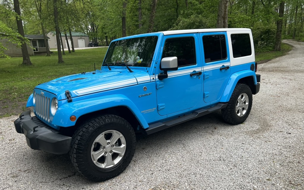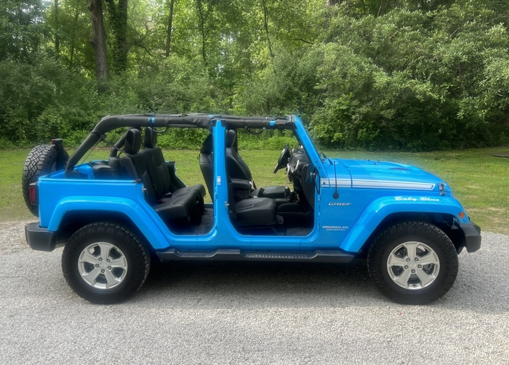 This jeep is loaded with leather seats, satellite radio, Bluetooth, t-tops, automatic transmission (Hilcrest Descent Control), heated seats, added grill plate , taillight covers , BesTop (top of the line soft top), Alpine sound system with all weather water proof subwoofer, extra set of mirrors for when the doors are off, foot pegs, and more. I also have a brand new in box harness to remove and hang the top in a garage or building for easy storage. 75,000 miles.