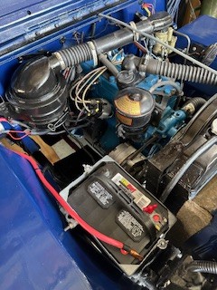 - 12v alternator, (low RPM cut in), fan belt, coil, ignition wires, electronic distributor, solenoid, ignition switch, headlight lamps and tail light bulbs, dash plates, wiring harness and blade fuse box.