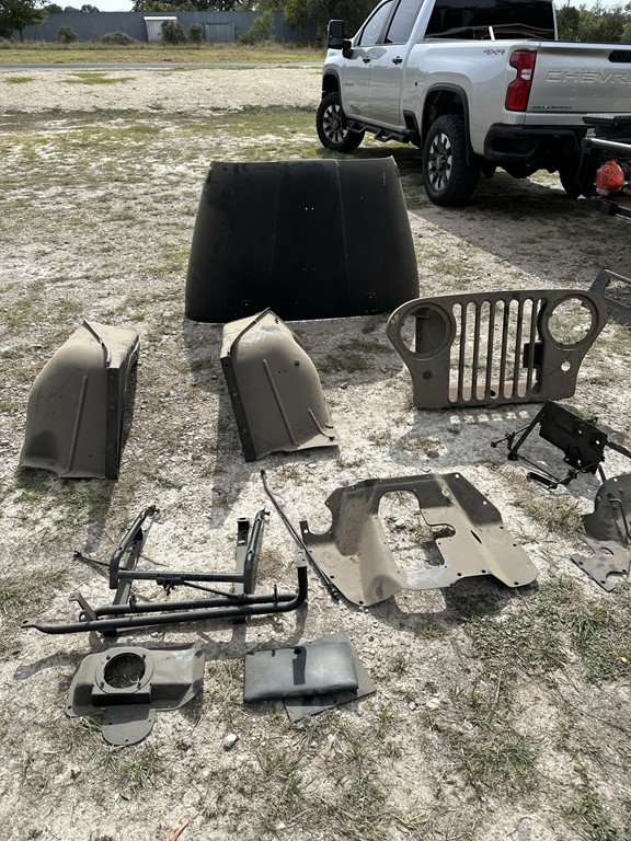 Jeep has been stripped, Body Off, down to rolling Chassis, engine in, All Body Parts & Panels and Chassis have been Media Blasted, then 2-part Auto Epoxy Primed, New Bed Floor and Floorboard Panels welded in, and ready to be reassembled, painted and finished. Body had very little to no rust. Jeep comes with original Buick Dauntless V-6 Engine (presumed to run). All original parts included and clean title in-hand. $2,000 - $3,000 already invested.