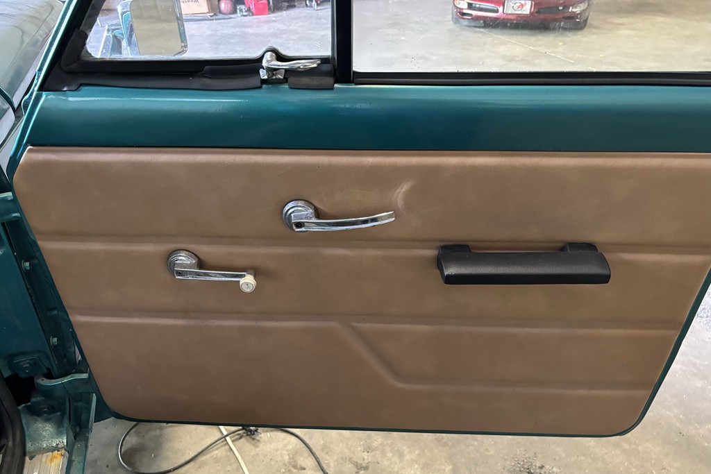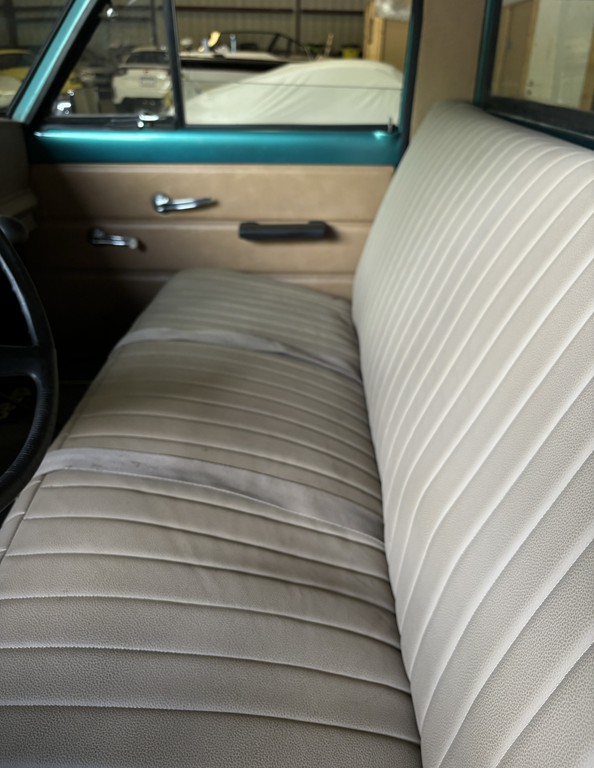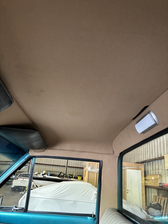 armrest, headliner, kick panels, bench seat reupholstered, floor mat, dome light lens, peddle pads, brake release handle, radio delete cover,