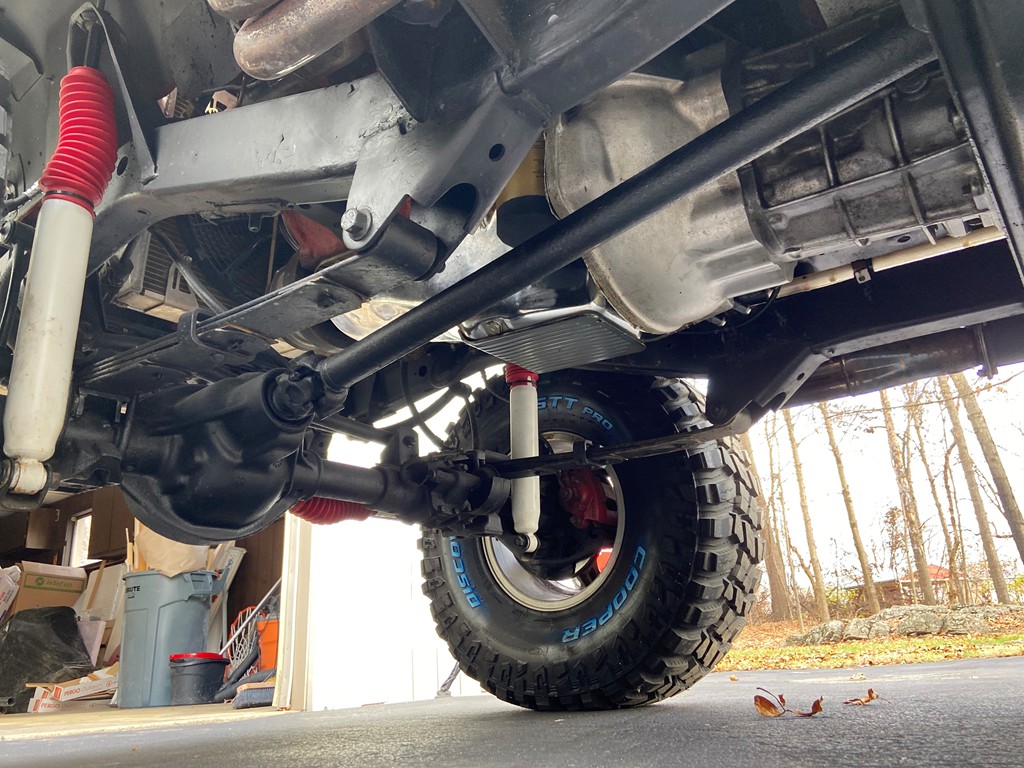 Spring over axle lift, CV drive shaft with slip yoke eliminator.