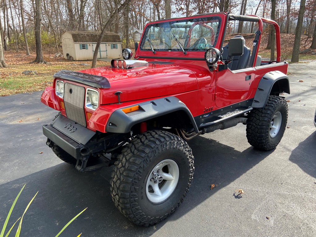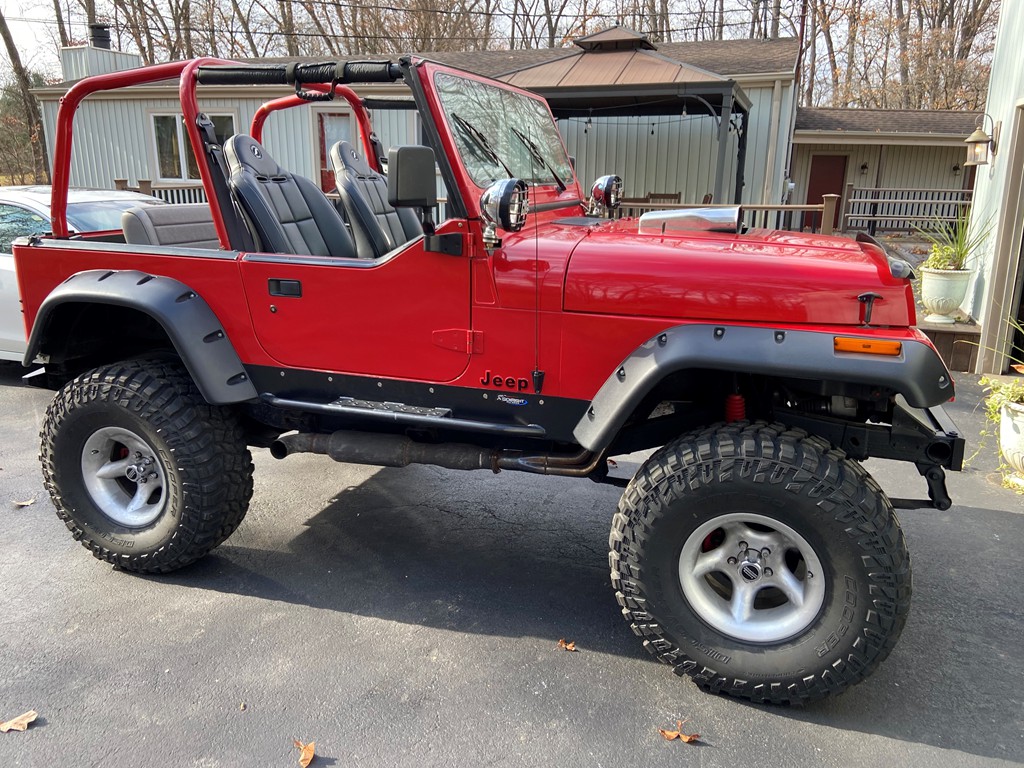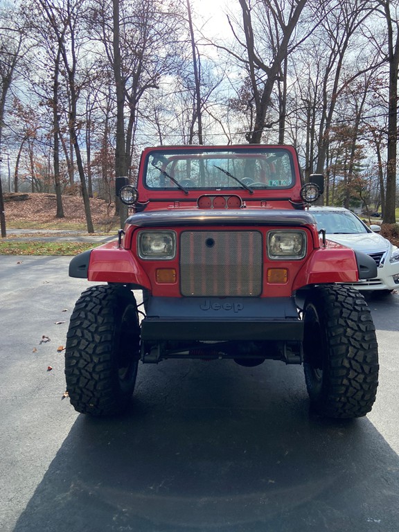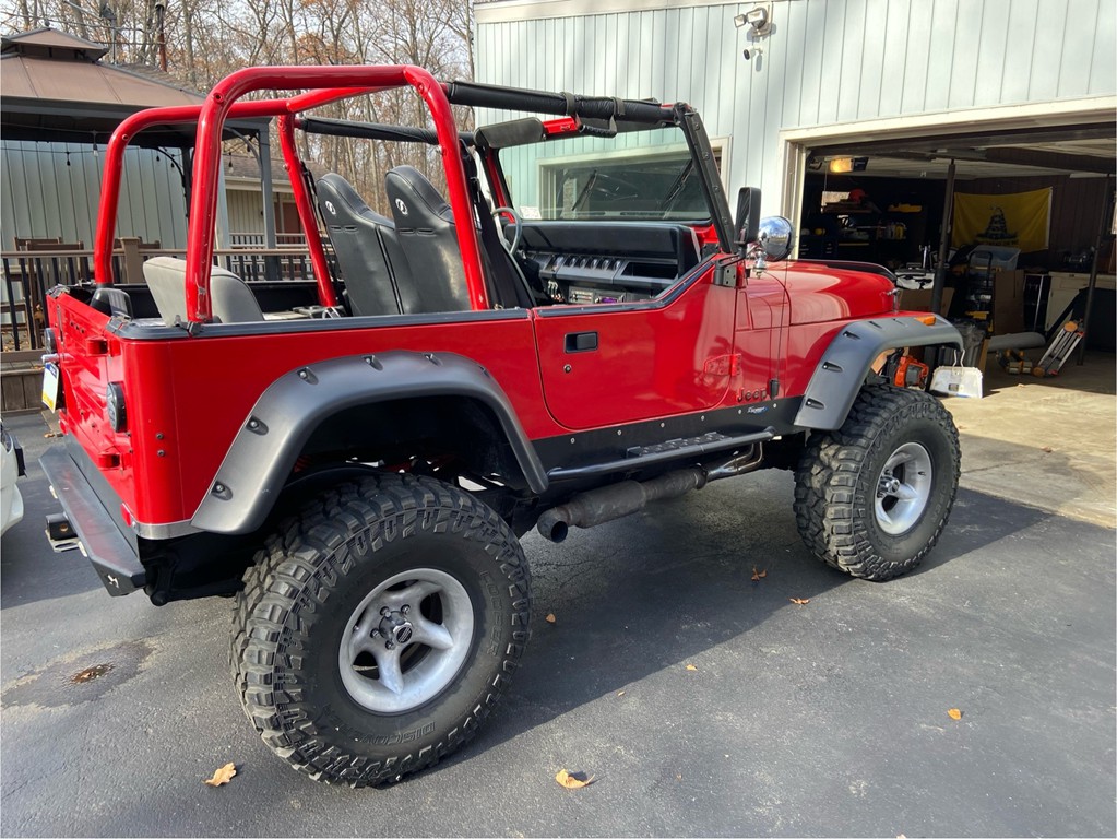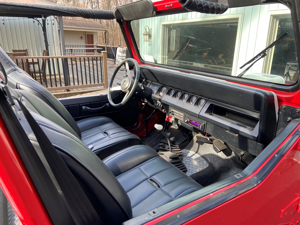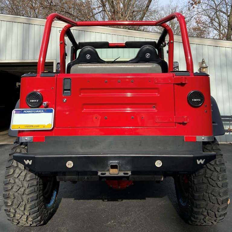 Includes: soft top (OK condition), spare 35" tire with matching American Racing rim, Extra hood (white), cover, bikini top, center console
