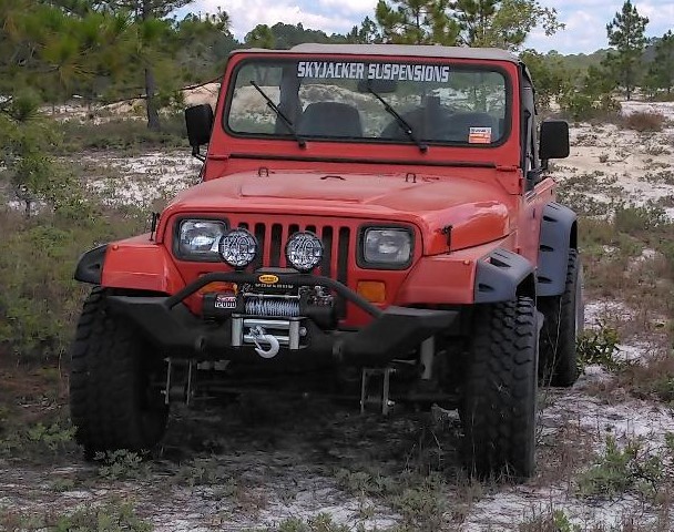 I have a 90 wrangler I just don't use as much anymore. I dropped a Chevy 350 V8 in her and stripped all the electronics off of the engine. It runs now with an old fashioned distributor and Edelbrock 4 bbl carb. Old School. It's ahead of an NV3500 5 speed transmission and an NP231 transfer case. It has a Skyjacker suspension with a total 3" lift, riding on 31 x 10.5 mud tires. Tires are like new. The Dana 35 front axle has a Spartan Locker differential, 4.10 with a manual engagement. Again, old school. The Dana rear axle is unchanged.