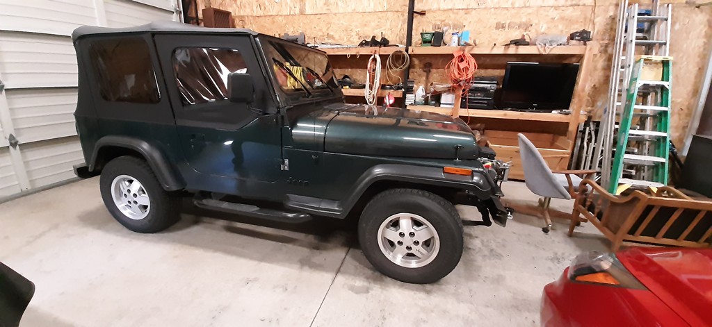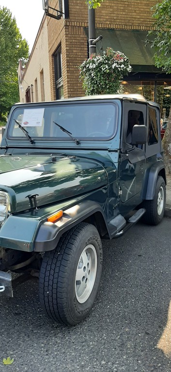 Forest green, 4 cylinder, manual transmission, soft top classic Wrangler in mint condition! My husband and I owned and drove it on back roads in the Cascades for 12 years. Always parked in our shop when not driving. Has 95,165 miles. My husband kept it in immaculate condition, I have all the paperwork. When purchased in 2012, it had new paint job, front windshield, and black soft top. Engine, shocks, electrical, transmission, all maintained these 12 years, and it runs like a jeep dream! A joy to drive for young or old or in between!!