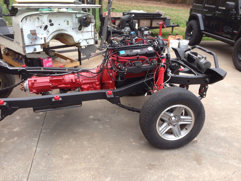 I have an 89 Jeep YJ that I've been building on for years, I've lost interest and the time needed to finish it. The Jeep started as a four banger with manual transmission. I bought a '95 Jeep Grand Cherokee (ZJ) and put the entire (318 - V8) powertrain in the YJ with help from advanced adapters weld in engine mounts. The block has been completely tore down, honed and painted. It has all new rings, bearings and gaskets. A new set of Quest heads and new MSD Blaster coil w/oversized plug wires and retainers. New HP aluminum radiator, Jeep valve covers and matching air cleaner. I currently have the A/C block off pully installed but I still have the AC compress and all associated parts to make it work, I've even installed and adapted the AC components under the dash for fully operational air conditioning. I have the manuals for both model jeeps and printed wiring schematics for the entire ZJ system. I have a hard top, soft top, bikini top, full doors, half doors, family style roll bar and tilt steering column. I have also swapped out the factory rear end for a ford 8.8 and I have the gears to make it a 4.10 "same as the front axel" It has been torn down to the frame, sandblasted, coated and all stainless brake lines installed. Four wheel disc brakes and new drilled rotors. 20gal fuel tank. It has a full set of new Smitty Built XRC bumpers w/tire carrier, front winch, side steps and a set of Bushwacker cut-out fender flares. It also has a Rough Country 4" lift with all synthetic body bushings and greaseable HD shackles. I have started the deletion of the rear seat (I still have the seat) and bent metal to weld in and enclose the back portion of the interior to use as a storage compartment. I have (3) sets of bucket seats and to many other parts to mention from the YJ & ZJ both. The wiring needs to be completed, finish building the custom dash, weld in the rear axle after having new front and rear drive shafts made and configuring and installing the transmission mount.