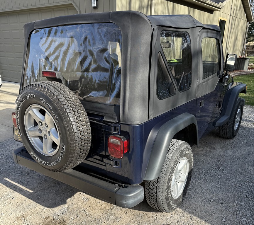 4.0 six cylinder, 5 speed manual, 17000 original miles, this Jeep is an excellent condition, all on the canvas is an excellent condition, and original. Certainly one of the cleanest jeeps for sale.